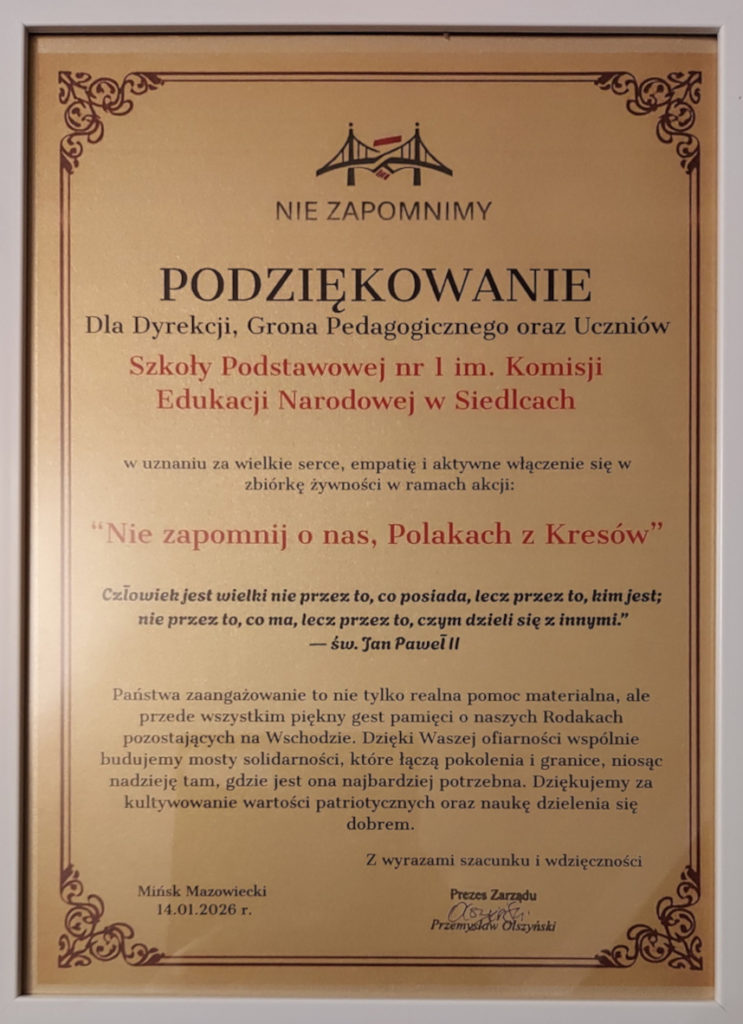 W ramach akcji charytatywnej „Paczuszka dla Maluszka”, organizowanej przez młodzież Internatu przy ZSP nr 1 w Siedlcach, nasza szkoła zebrała