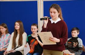 Zgromadzona na sali gimnastycznej młodzież podziękowała młodym muzykom gromkimi brawami. Wszyscy słuchacze byli bardzo zadowoleni. Koncert zorganizowała pani Małgorzata Rudnicka.