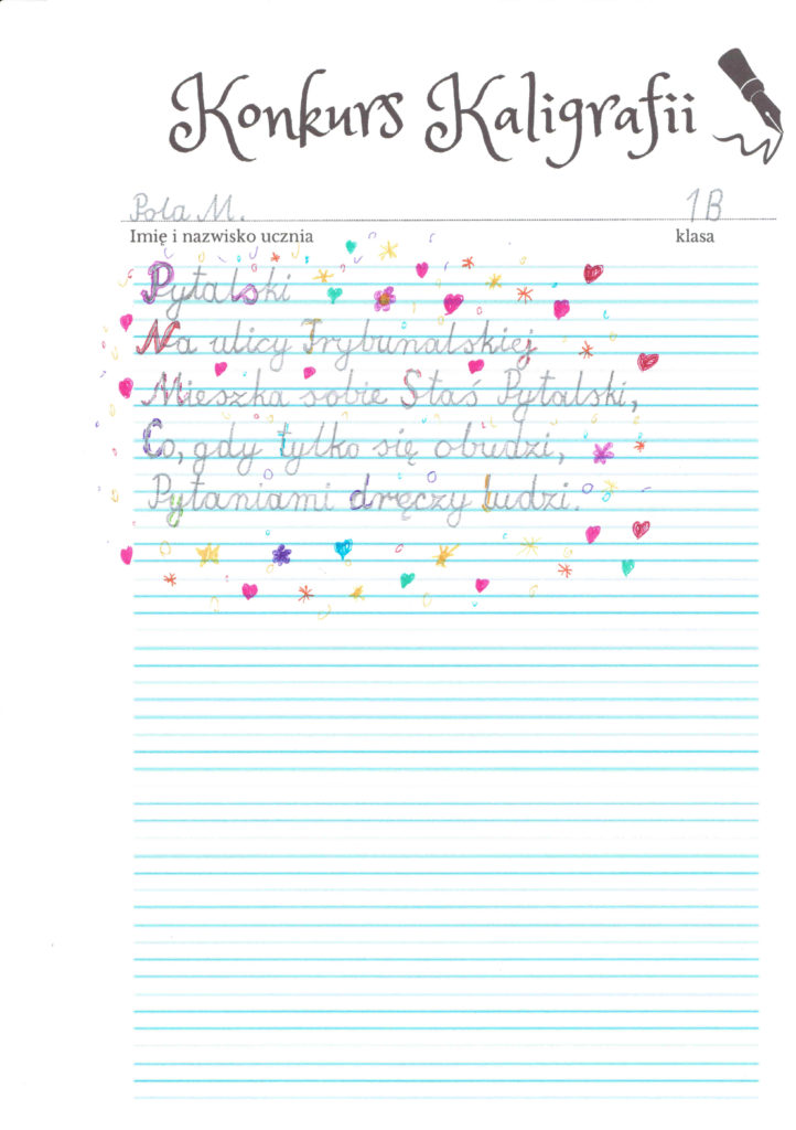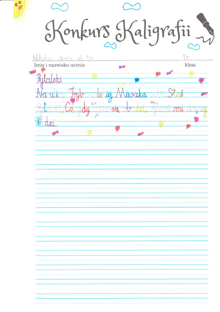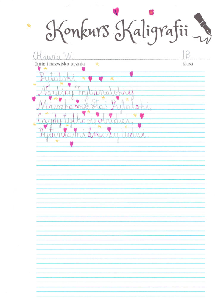 Gratulujemy zwycięzcom i wyróżnionym, dziękujemy wszystkim uczestnikom i ich nauczycielom za zaangażowanie! Każda linijka napisana z sercem to krok w stronę wyrażania siebie przez pismo.