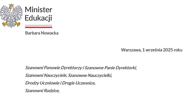 Aktualności List Minister Barbary Nowackiej na rozpoczęcie roku szkolnego 2025/2026 31 sierpnia 202531 sierpnia 2025 JKulicki Z treścią listu można zapoznać się klikając ten link.
