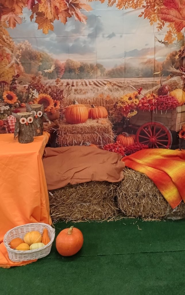 Początek nowego roku szkolnego to ostatnie dni lata. Kolejna pora roku i towarzysząca jej aura za oknem zainspirowała wychowawców świetlicy do stworzenia jesiennego tła fotograficznego. Do naszej szkoły przyszła jesień. Przywitała nas kolorowymi liśćmi, delikatnym blaskiem słonecznym, a co najważniejsze bogactwem swych darów. Przy naszej jesiennej ściance pojawiły się różnokolorowe dynie, cukinie, kasztany, żołędzie.