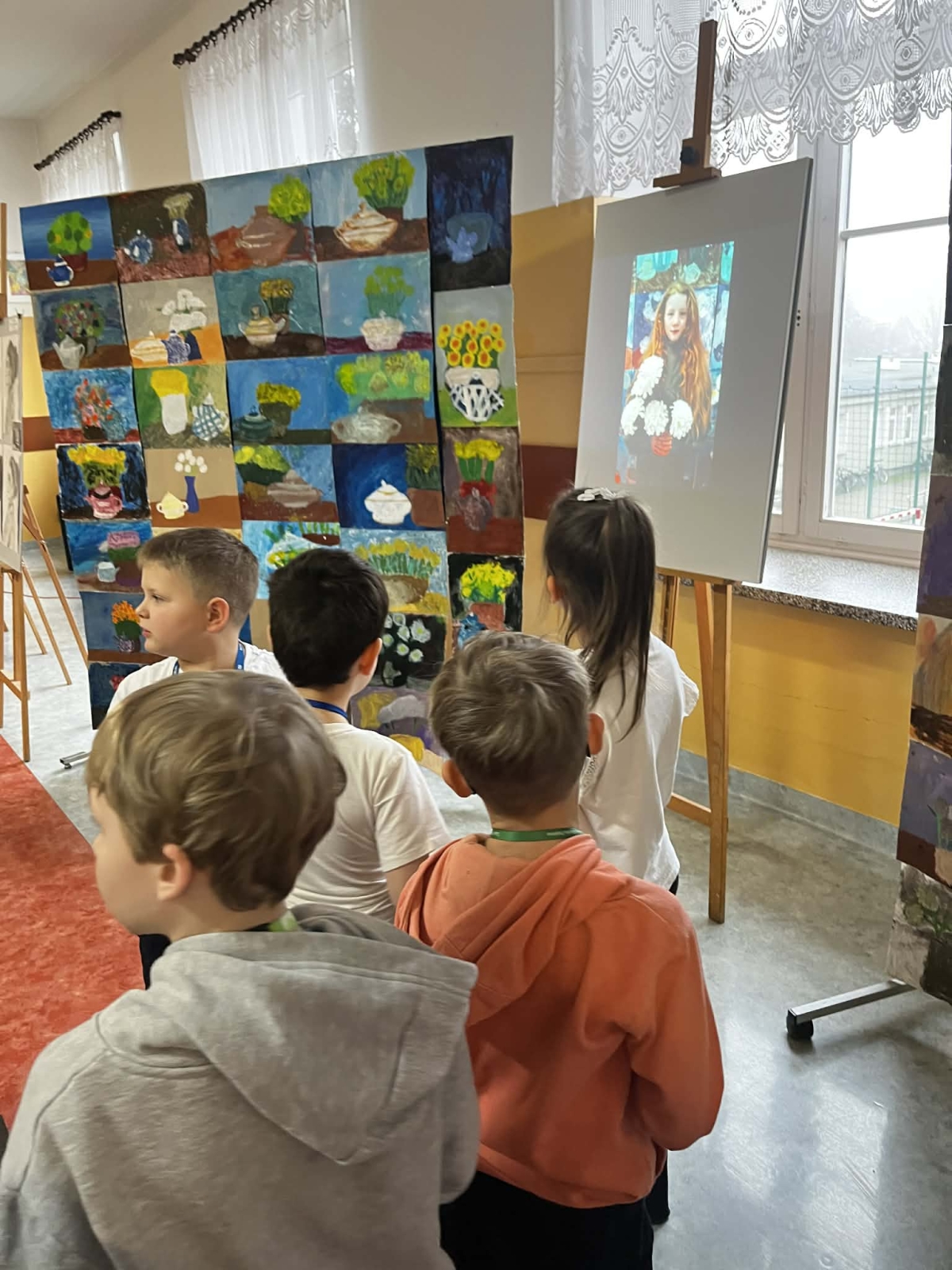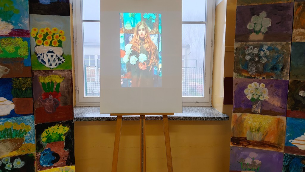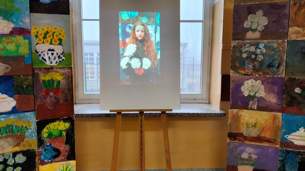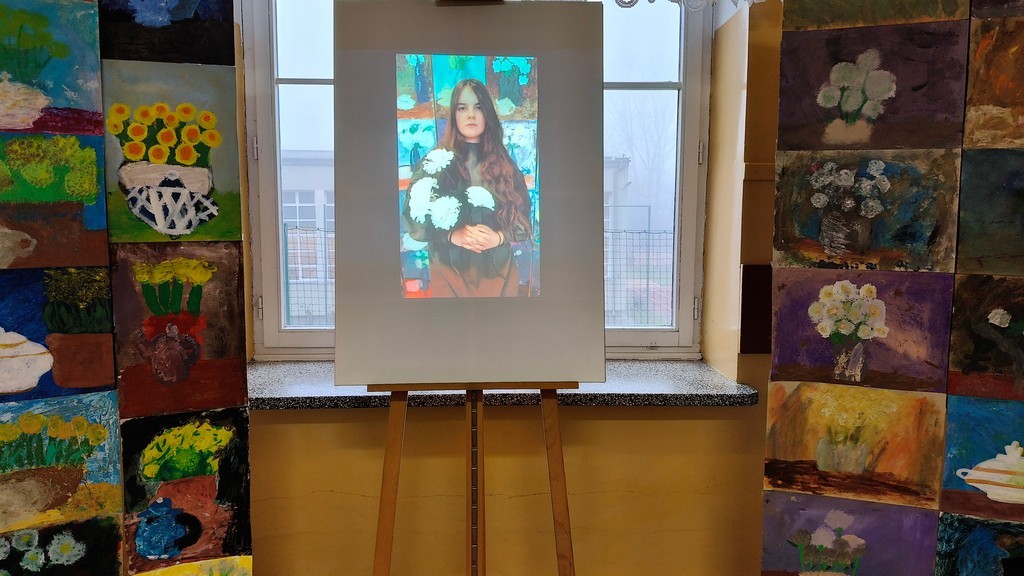 Podczas wernisażu Pani Katarzyna Buzuk, nauczyciel plastyki, twórca ekspozycji opowiedziała zgromadzonej społeczności szkolnej o wystawie i procesie powstawania prac. Prezentowana fotorelacja dokumentująca proces twórczy, pokazała z jakim zaangażowaniem Młodzi Twórcy weszli, na lekcjach plastyki i warsztatach, w twórczy dialog z wielką malarką. Jak podkreśliła dyrektor szkoły Pani Magdalena Olszewska- Silna, sprawczość i bliski kontakt ze sztuką odgrywa olbrzymią rolę w rozwoju młodych ludzi, pozwala na wyrażanie własnych emocji, inspiruje do działania, a dziękując za organizację wystawy podkreśliła wagę relacji uczeń- nauczyciel w procesie twórczym.