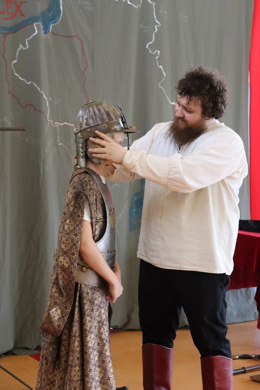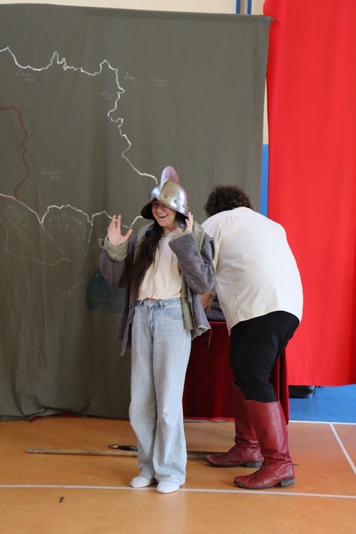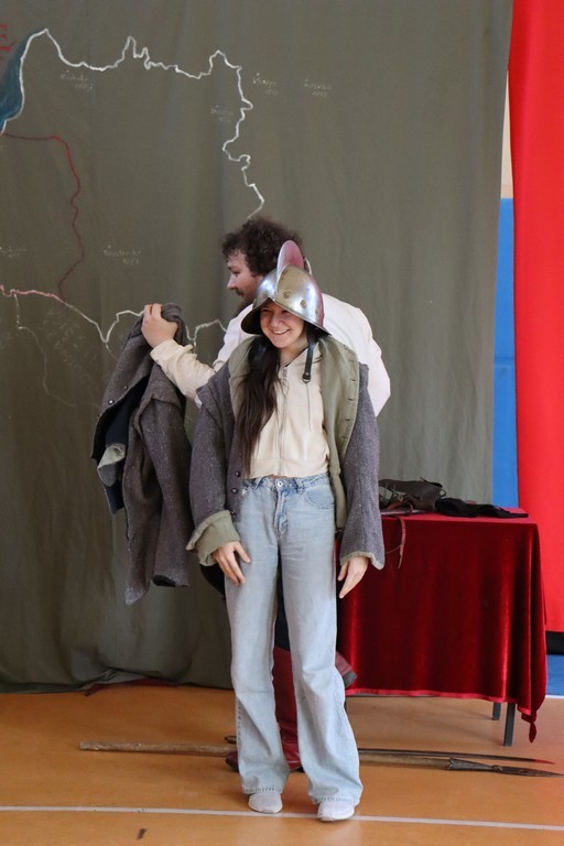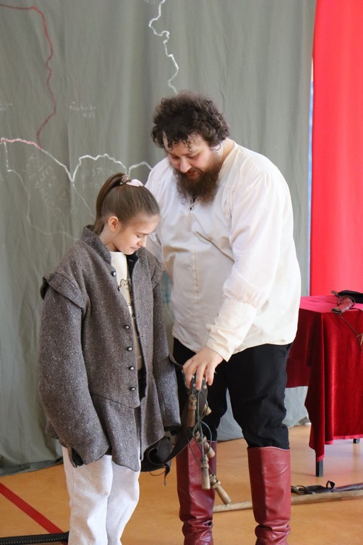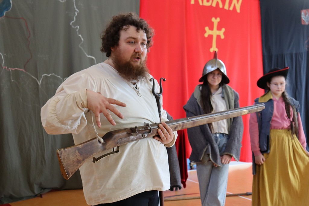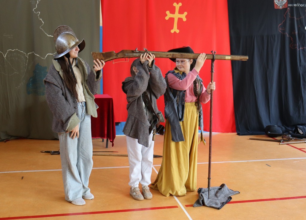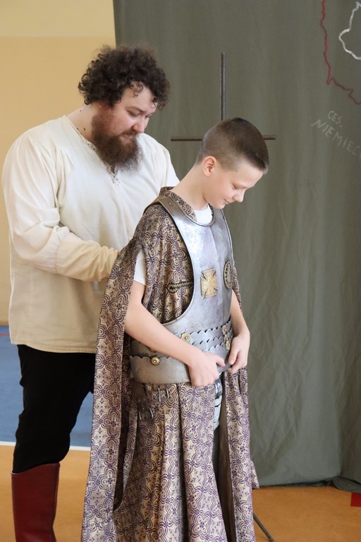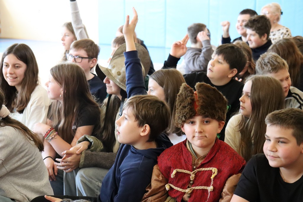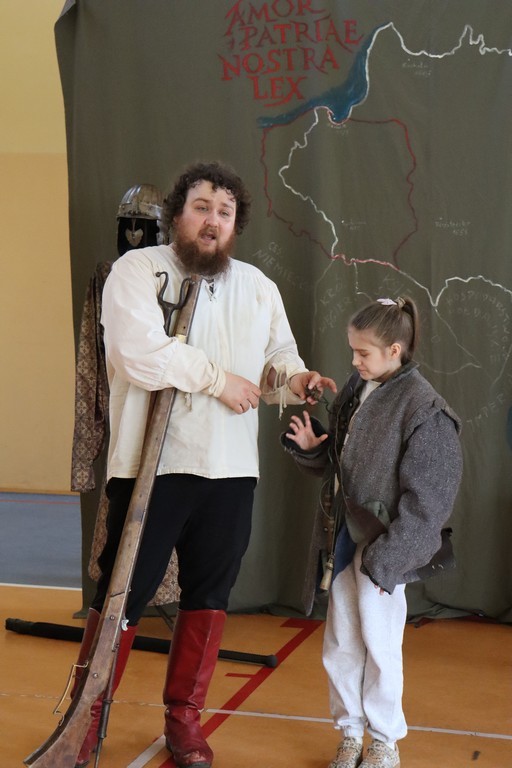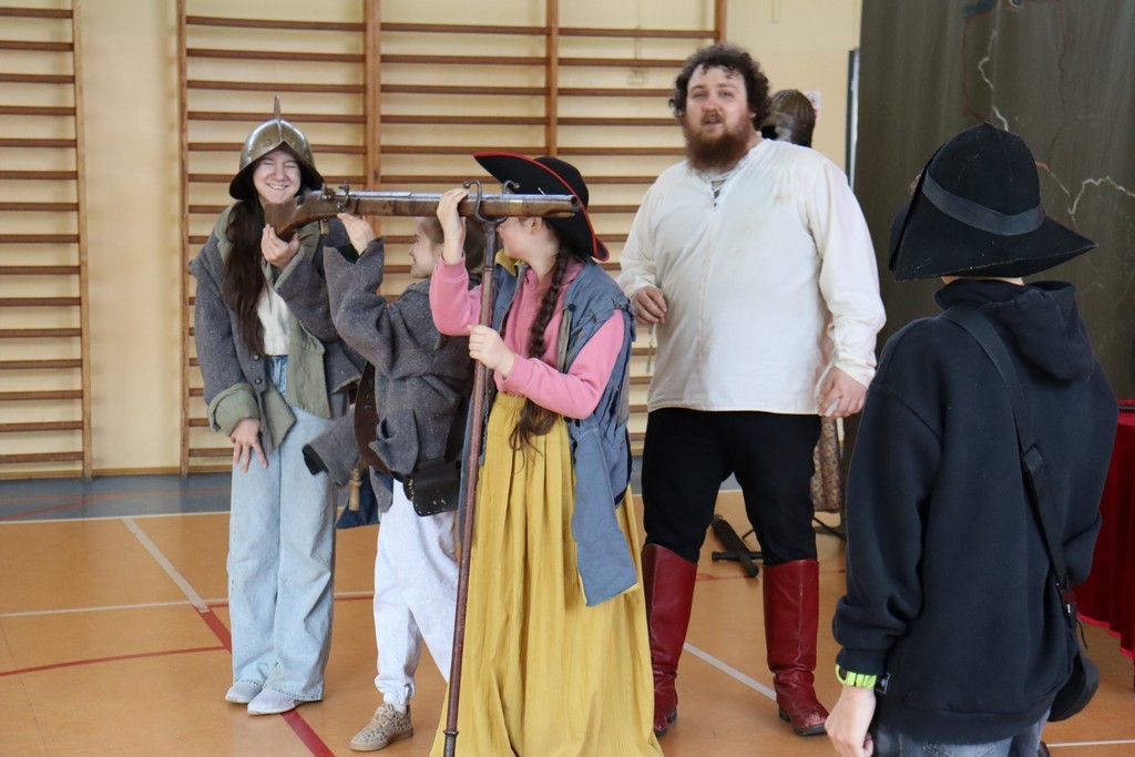 Dnia 2 marca 2026 roku uczniowie naszej szkoły uczestniczyli w żywej lekcji historii z Bractwem Rycerskim Kerin. Uczniowie mieli możliwość przenieść się w świat odważnych rycerzy, dowiedzieć się o obyczajach dworskich, które panowały w czasach średniowiecza. Młodzież szkolna z ogromnym zainteresowaniem słuchała ciekawych opowieści o szlachcie polskiej, o wiekach złotym i srebrnym w historii naszej Ojczyzny. Chętne osoby zakładały stroje historyczne z dawnych epok oraz próbowały posługiwać się bronią dawnych czasów.
