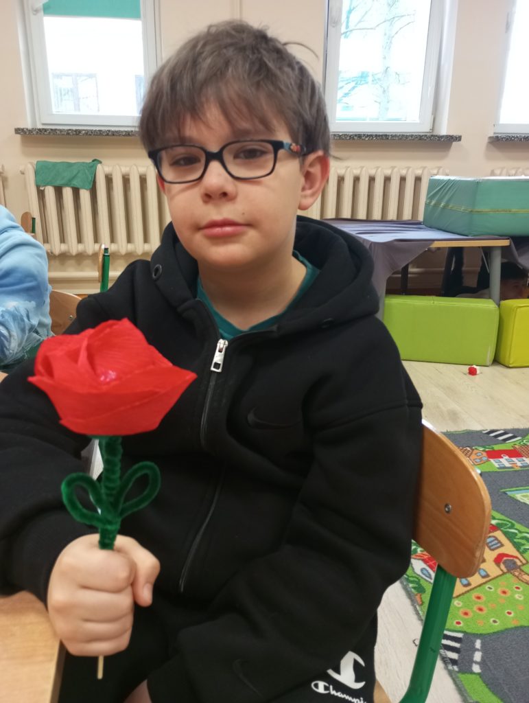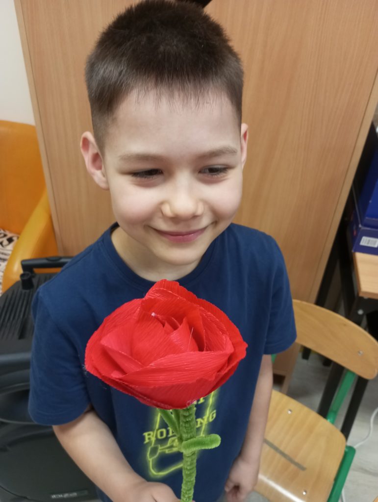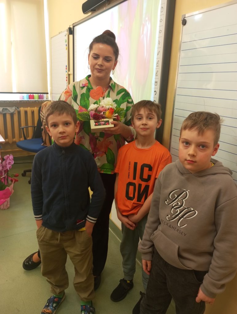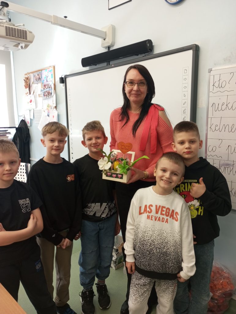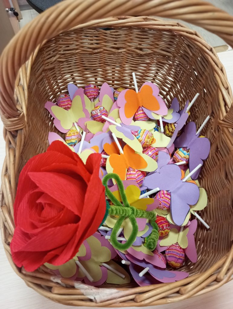 Z okazji Dnia Kobiet dzieci ze świetlicy szkolnej przygotowały wyjątkowe niespodzianki dla swoich koleżanek oraz kwiatki dla mam. Własnoręcznie wykonały słodkie upominki – kolorowe lizaki w kształcie motylków, które sprawiły wiele radości i wywołały uśmiechy na twarzach obdarowanych.
