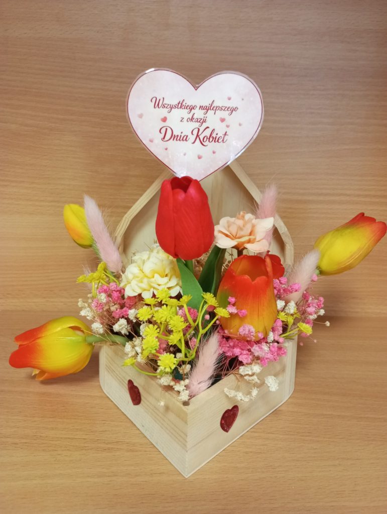 Uczniowie pamiętali również o pracownikach szkoły. Dla nauczycieli oraz pracowników administracji przygotowali piękne kompozycje w drewnianych szkatułkach. Był to miły gest wdzięczności i serdeczności.