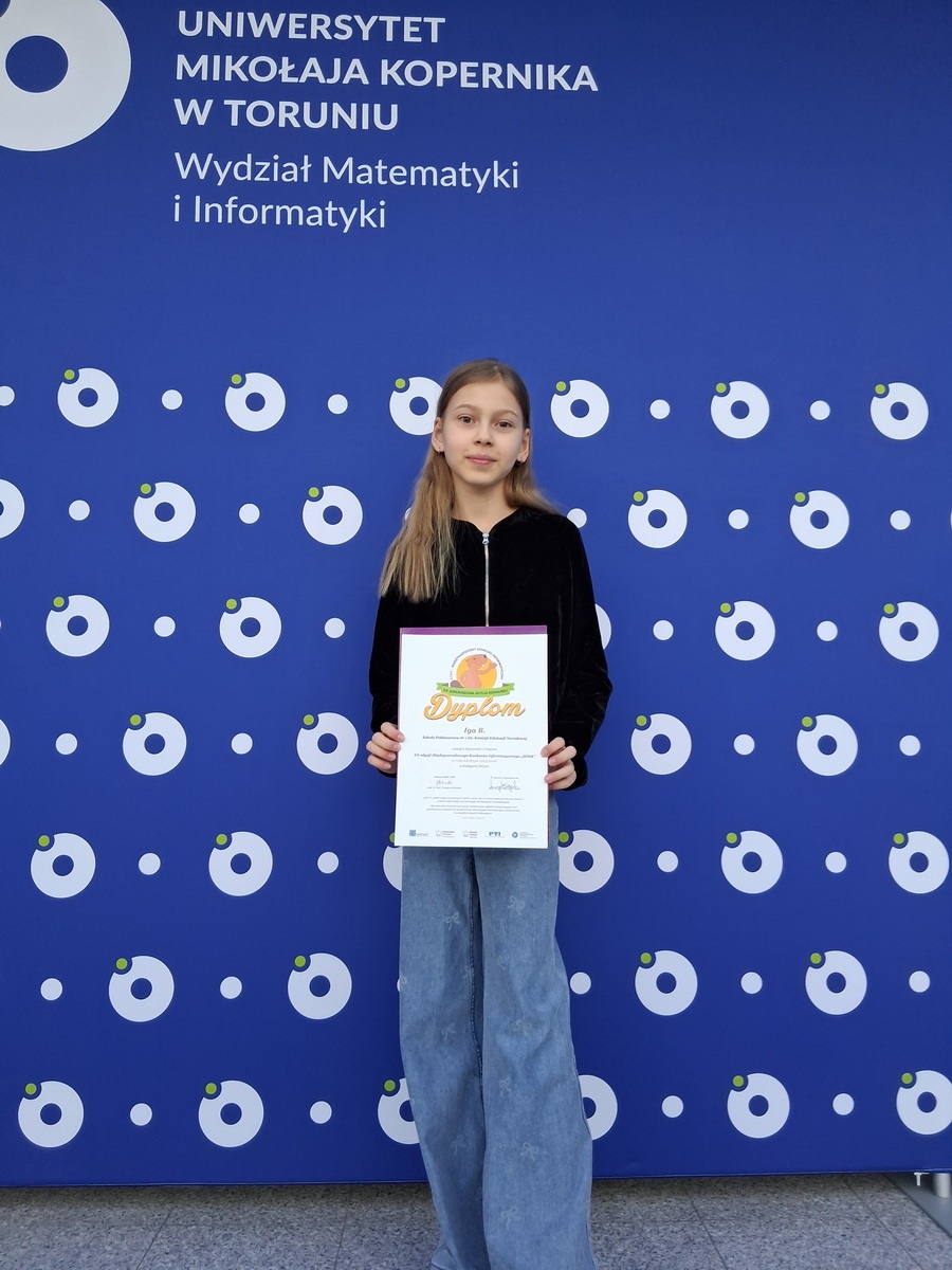 Wśród laureatów I miejsca tego prestiżowego konkursu w kategorii Skrzat (klasy I – III) znalazła się uczennica naszej szkoły z klasy 3a – Iga Babicz.