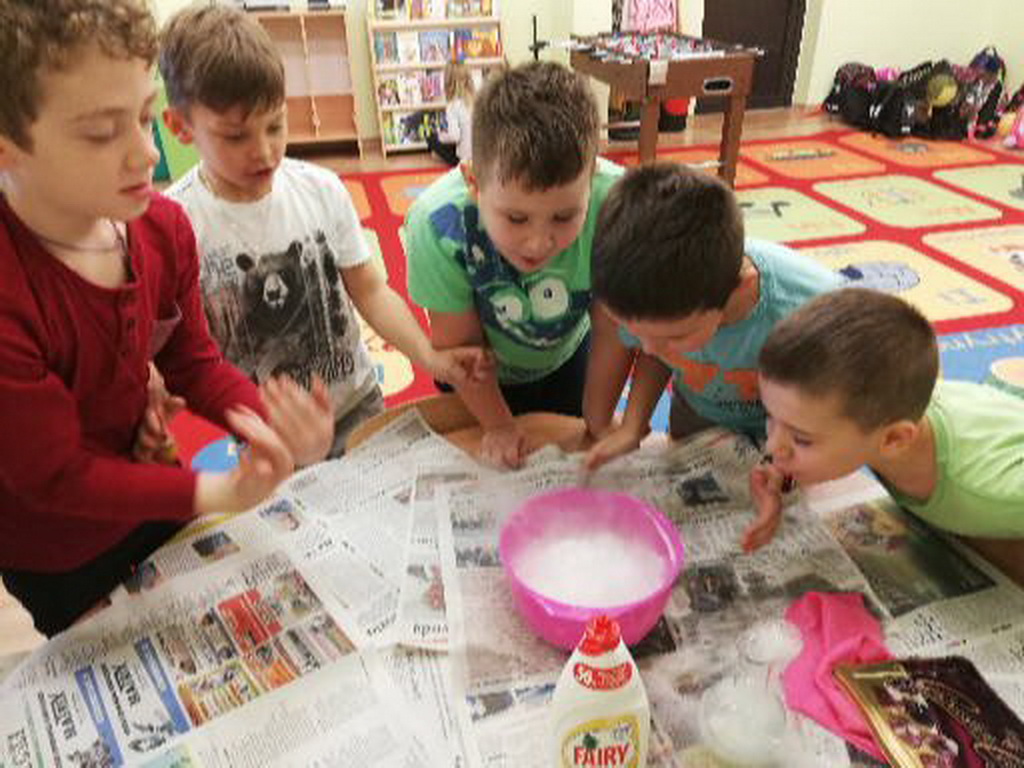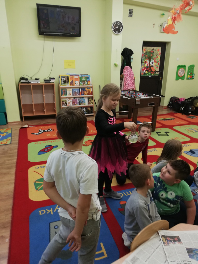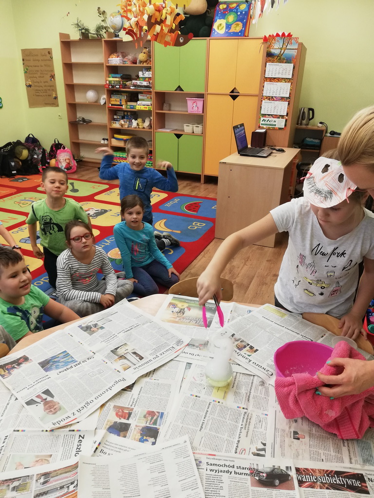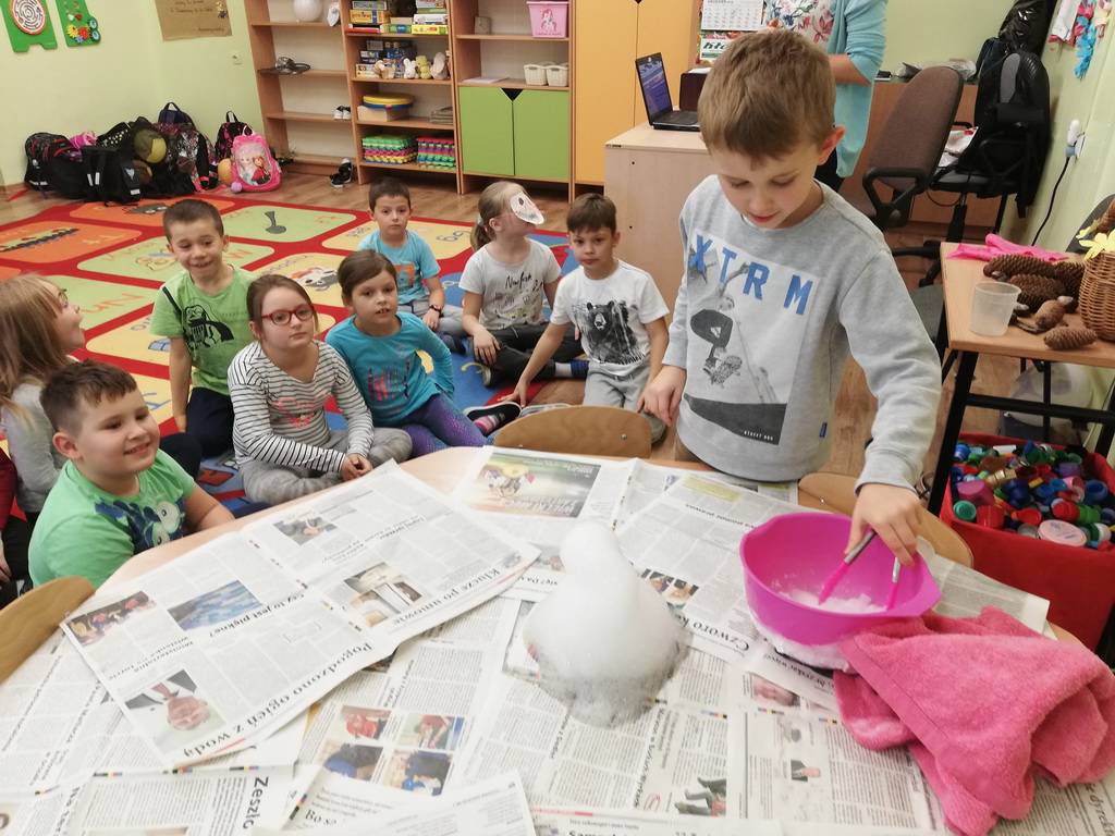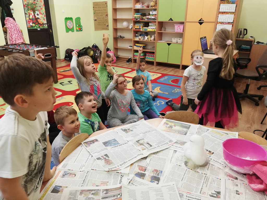 Na jednym z takich zajęć w świetlicy szkolnej uczniowie z klas pierwszych i drugich mogli zamienić się w naukowców, którzy uczestniczyli w zajęciach badawczych z wykorzystaniem suchego lodu.