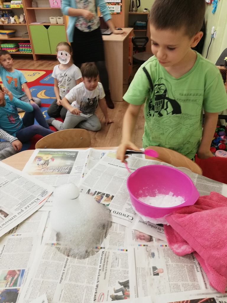 Suchy lód to materiał, który jest składnikiem mieszanin oziębiających i służy do poznawania tajemnic zjawisk fizycznych. Podczas zajęć dzieci dowiedziały się jak zrobiony jest suchy lód i do czego można go wykorzystać w życiu codziennym.