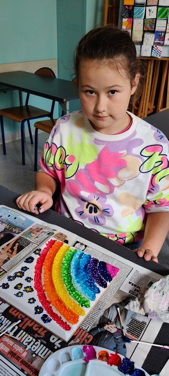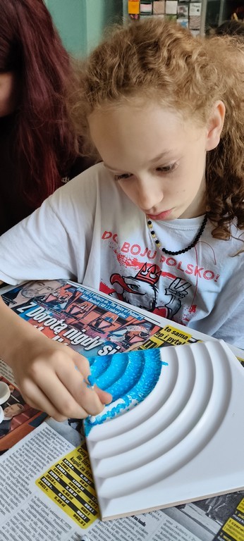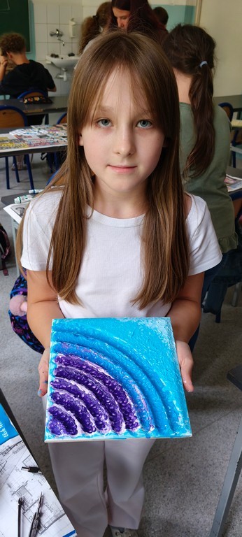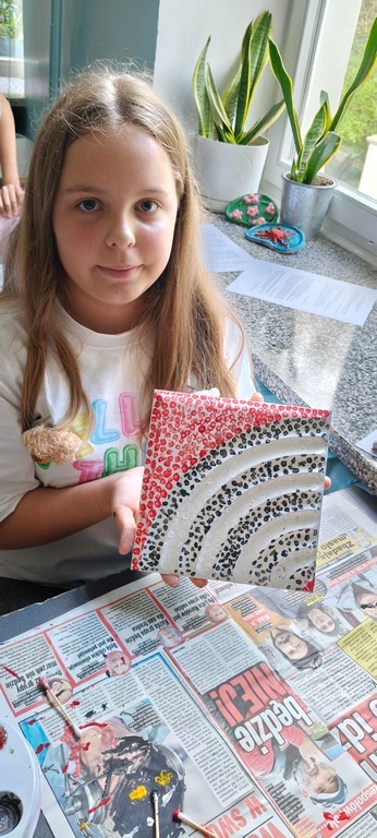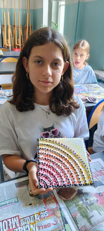Niedzielne popołudnie na wyspie Grande Jatte Georges’a Seurata to obraz namalowany techniką puentylizmu, czyli… kropkami. Tę trudną i pracochłonną technikę zastosowaliśmy tworząc abstrakcje na płytkach ceramicznych. Oto efekty działań twórczych uczestników koła plastycznego.