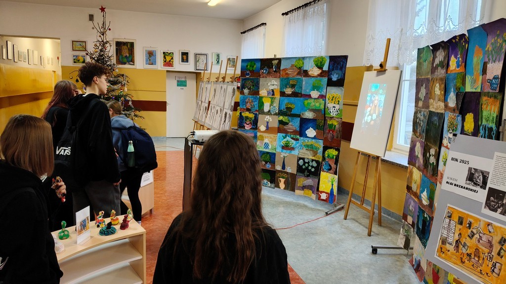 19 grudnia odbył się w naszej szkole uroczysty wernisaż wystawy- Twórczy dialog z Olgą Boznańską, prezentowanej w ramach szkolnych obchodów Roku Olgi Boznańskiej. Wspomniane wydarzenie kulturalne zgromadziło liczne grono szkolnych miłośników sztuki wśród, których znalazła się dyrektor szkoły Pani Magdalena Olszewska- Silna, wicedyrektor Pani Weronika Paczuska, grono pedagogiczne oraz uczniowie.