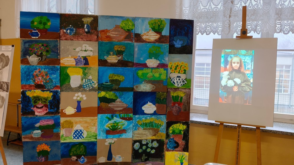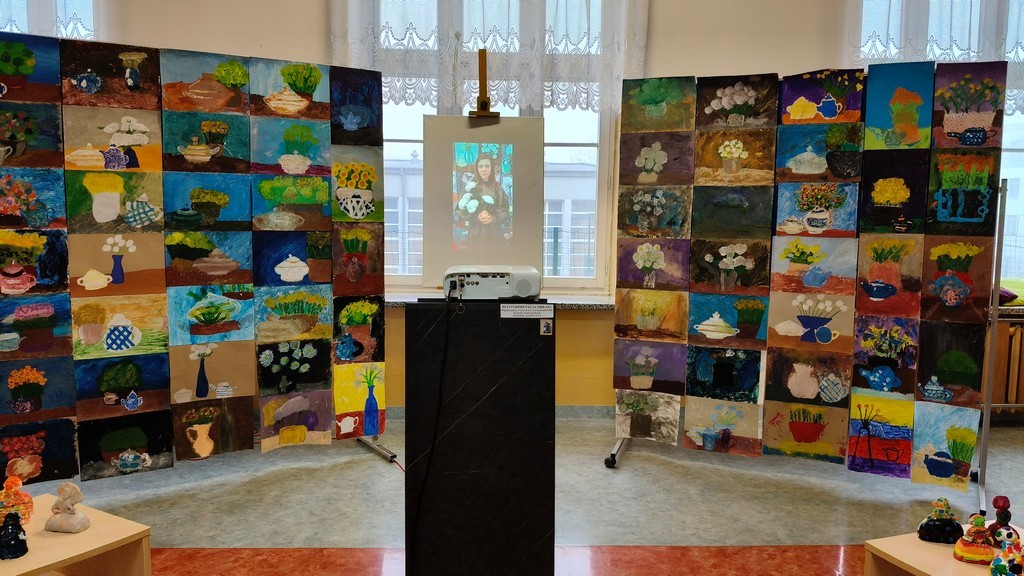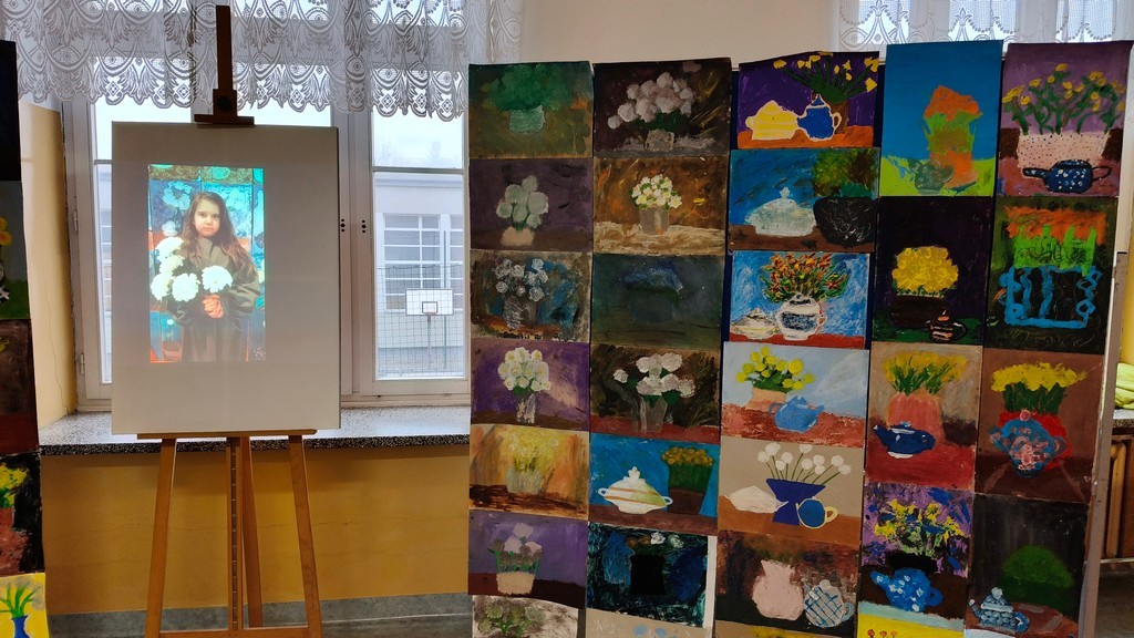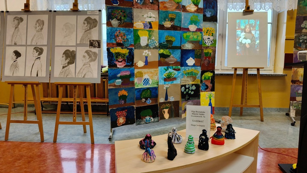 Podczas wernisażu Pani Katarzyna Buzuk, nauczyciel plastyki, twórca ekspozycji opowiedziała zgromadzonej społeczności szkolnej o wystawie i procesie powstawania prac. Prezentowana fotorelacja dokumentująca proces twórczy, pokazała z jakim zaangażowaniem Młodzi Twórcy weszli, na lekcjach plastyki i warsztatach, w twórczy dialog z wielką malarką. Jak podkreśliła dyrektor szkoły Pani Magdalena Olszewska- Silna, sprawczość i bliski kontakt ze sztuką odgrywa olbrzymią rolę w rozwoju młodych ludzi, pozwala na wyrażanie własnych emocji, inspiruje do działania, a dziękując za organizację wystawy podkreśliła wagę relacji uczeń- nauczyciel w procesie twórczym.