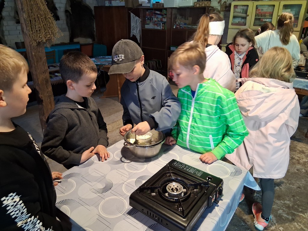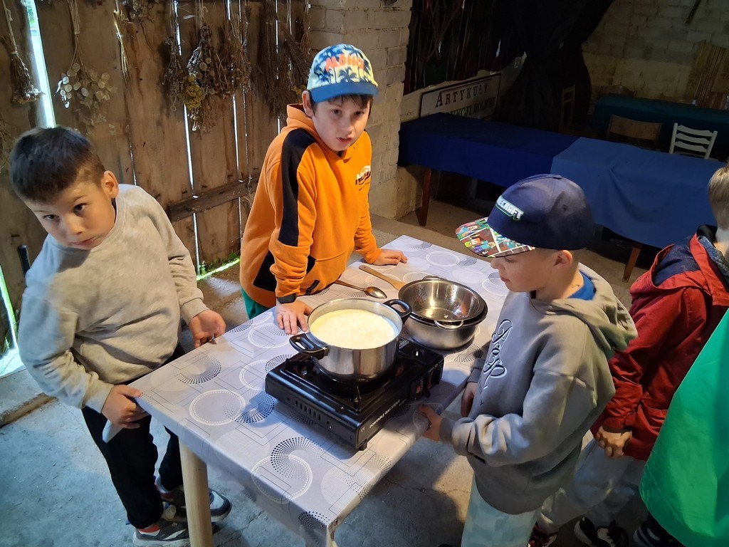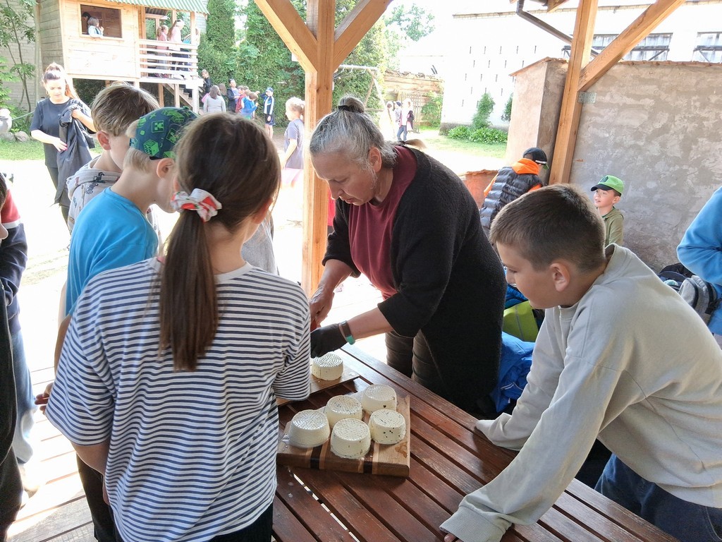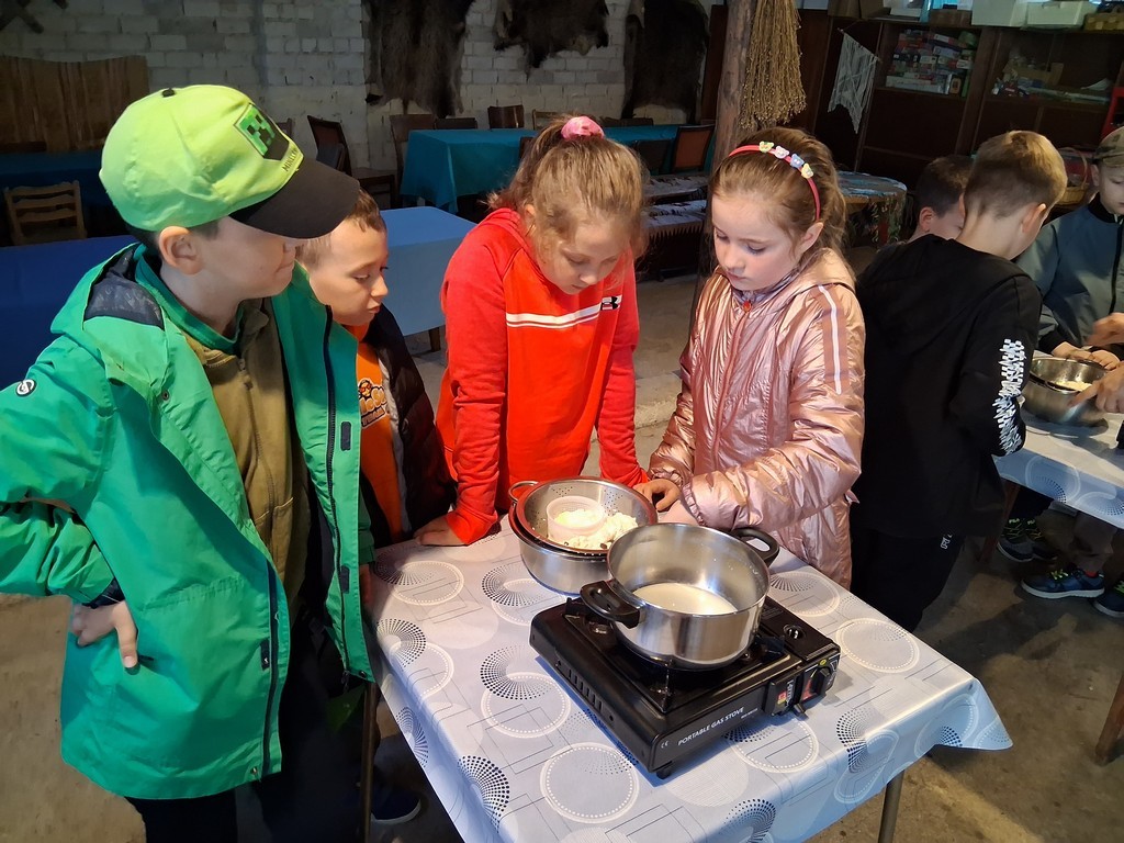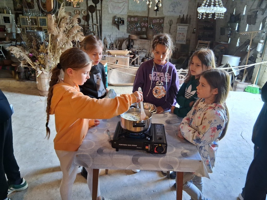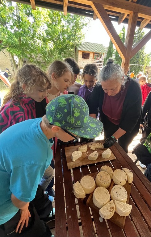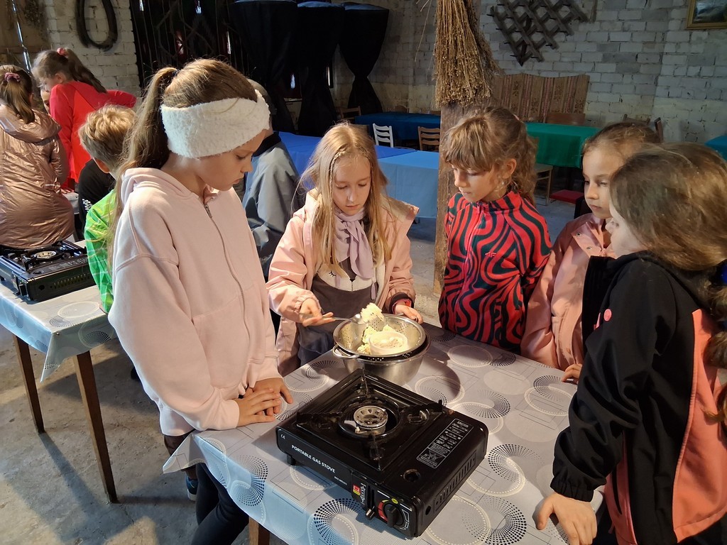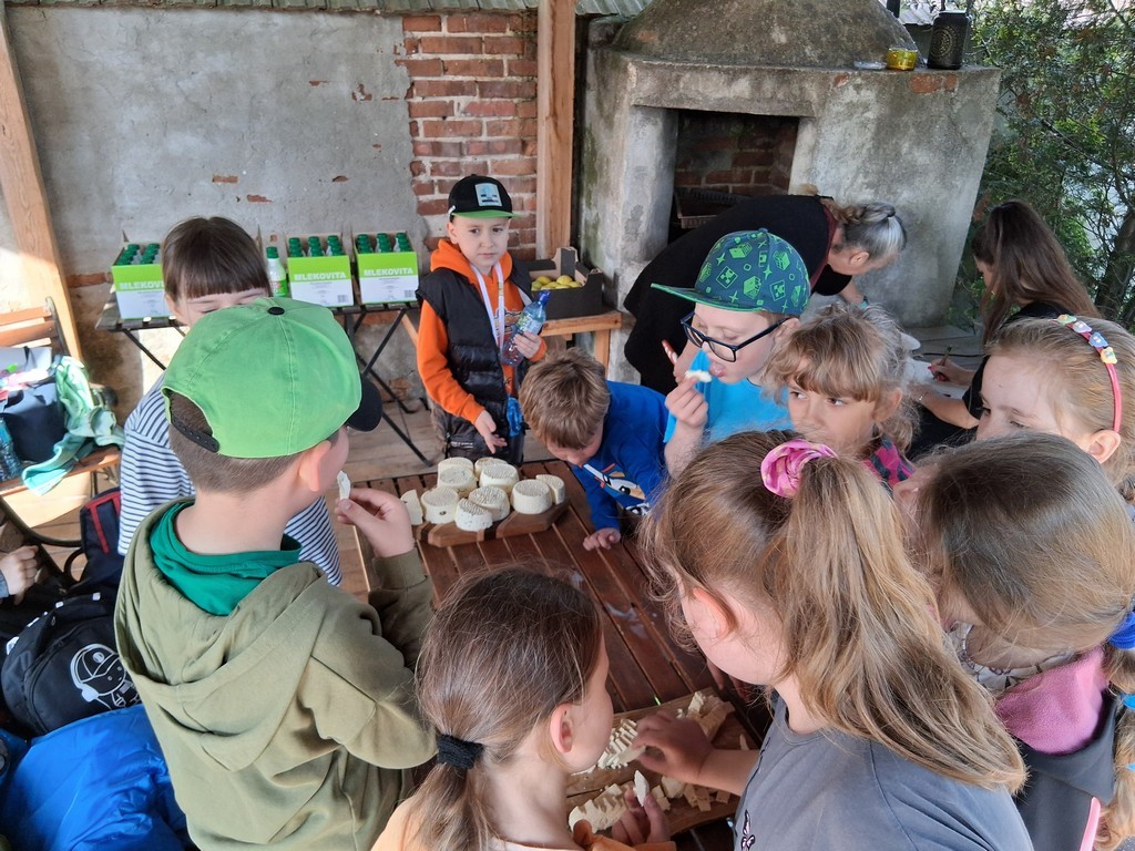 W ramach zajęć edukacyjnych dzieci miały wyjątkową okazję samodzielnie przygotować sery korycińskie – od podgrzewania mleka, przez dodanie podpuszczki, wzbogacając go aromatycznymi dodatkami: czosnkiem niedźwiedzim, kozieradką, czarnuszką i rodzynkami, aż po formowanie gotowego produktu. Każda grupa wyprodukowała inny rodzaj sera. Uczniowie uczyli się, jak powstają ekologiczne produkty mleczne. Mieli również okazję obejrzeć wystawę pięknych, ręcznie zdobionych pisanek, które wzbudziły duże zainteresowanie wśród uczestników.