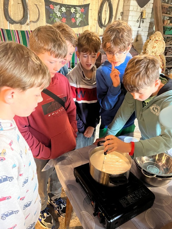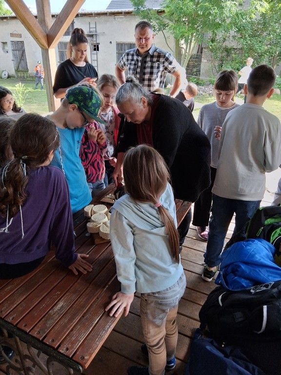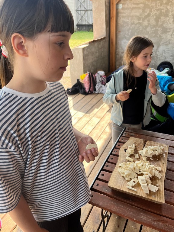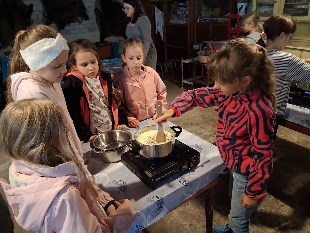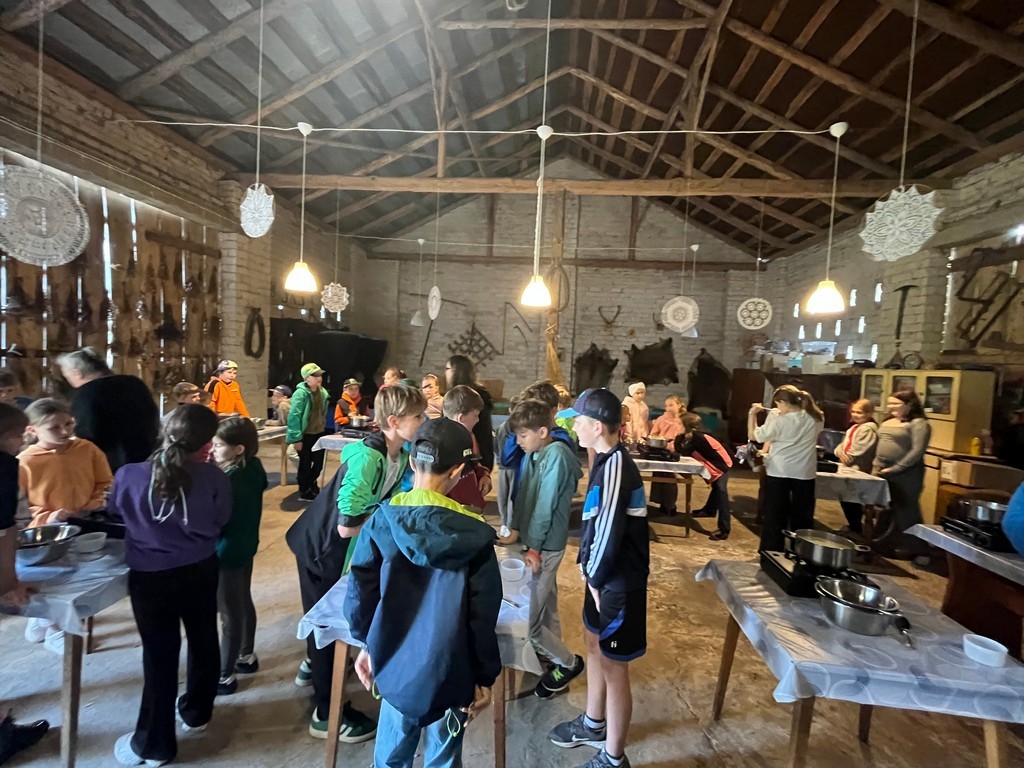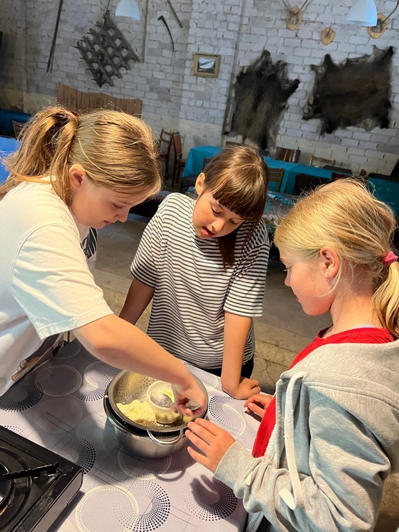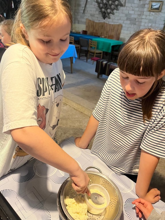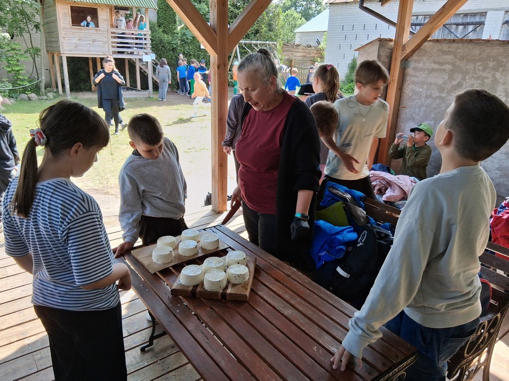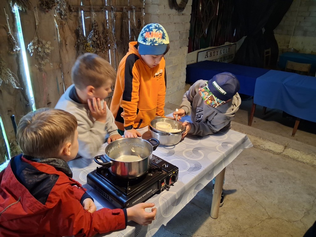 W ramach zajęć edukacyjnych dzieci miały wyjątkową okazję samodzielnie przygotować sery korycińskie – od podgrzewania mleka, przez dodanie podpuszczki, wzbogacając go aromatycznymi dodatkami: czosnkiem niedźwiedzim, kozieradką, czarnuszką i rodzynkami, aż po formowanie gotowego produktu. Każda grupa wyprodukowała inny rodzaj sera. Uczniowie uczyli się, jak powstają ekologiczne produkty mleczne. Mieli również okazję obejrzeć wystawę pięknych, ręcznie zdobionych pisanek, które wzbudziły duże zainteresowanie wśród uczestników.
