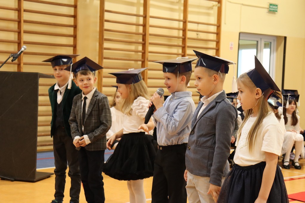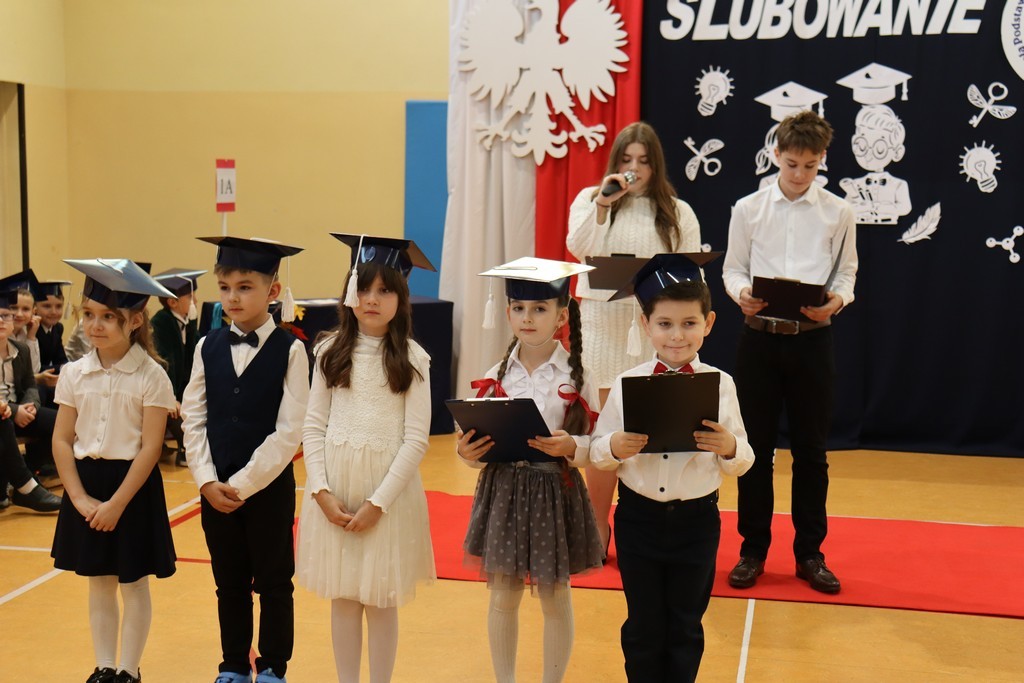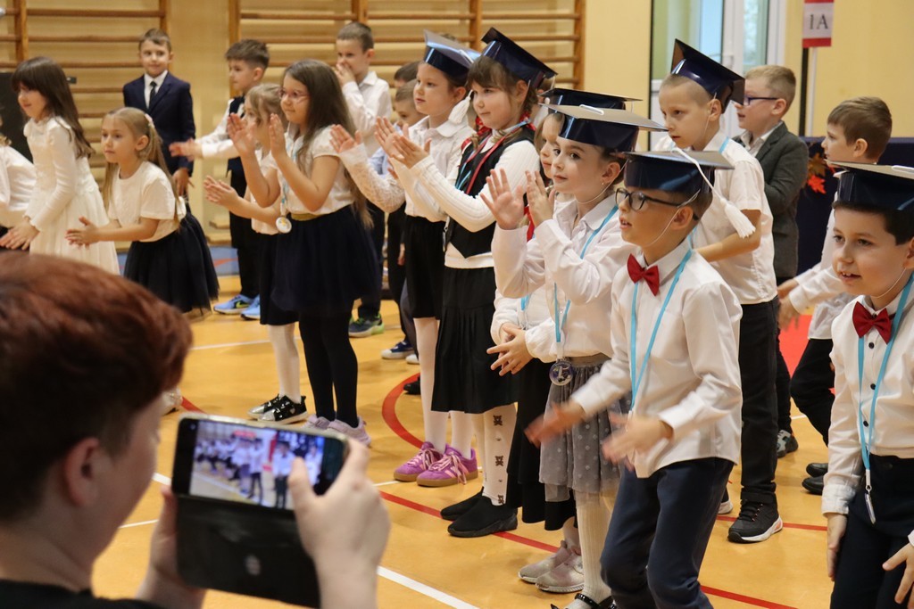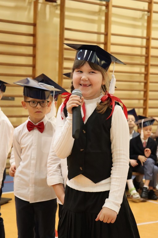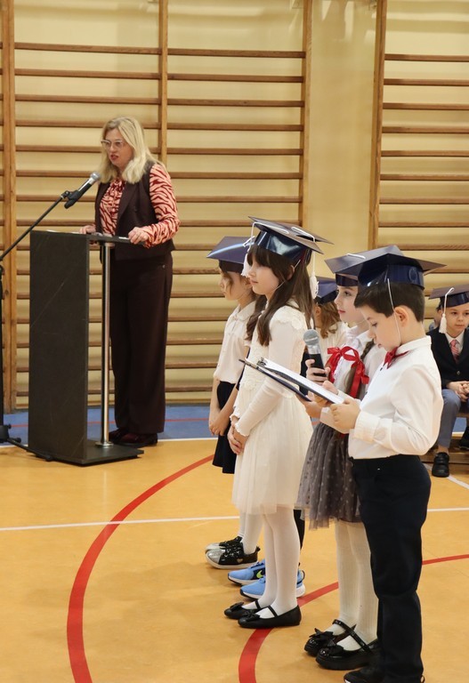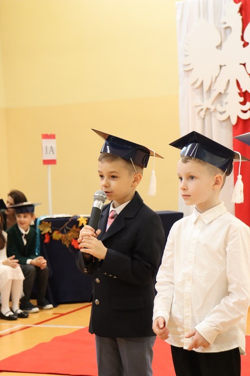 W czwartek, 23 października 2025 r. odbyła się w naszej szkole uroczystość pasowania na ucznia. Uroczyste ślubowanie złożyli uczniowie klas I a i I b pod opieką wychowawców pani Pauliny Hardej i pani Edyty Zabłockiej. Pasowanie, to jedno z najważniejszych wydarzeń w szkolnym życiu pierwszoklasisty. Podczas uroczystości obecni byli: Pani Dyrektor Magdalena Olszewska – Silna, Pani Wicedyrektor Weronika Paczuska, Przewodnicząca Rady Rodziców Pani Ewa Glapa- Chromińska, rodzice uczniów oraz nauczyciele . Od tego dnia, każde dziecko czuje się już prawdziwym uczniem, czyli pełnoprawnym członkiem szkolnej rodziny. Był to szczególny dzień, który na długo pozostanie w pamięci. W tym dniu dzieci oficjalnie przyjęte zostały do grona uczniów Szkoły Podstawowej nr 1 im. Komisji Edukacji Narodowej w Siedlcach. Podczas uroczystości pierwszoklasiści pokazali, że potrafią pięknie śpiewać i recytować wiersze. Najważniejszą jej częścią, na którą wszyscy czekali było ślubowanie oraz pasowanie. Uczniowie klas pierwszych ślubowali być godnymi Polakami i wzorowymi uczniami. Największym przeżyciem dla dzieci był moment pasowania. Pani Dyrektor Magdalena Olszewska- Silna, poprzez dotknięcie czerwonym ołówkiem ramienia każdego dziecka, zamieniała go w prawdziwego ucznia. Na koniec pierwszoklasiści otrzymali pamiątkowe dyplomy. Po uroczystości uczniowie klas I wraz z wychowawcami i rodzicami udali się do klas na poczęstunek. To był wyjątkowy dzień dla najmłodszych wychowanków, którym życzymy sukcesów i przyjemnego pobytu w murach naszej szkoły.