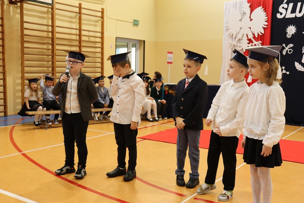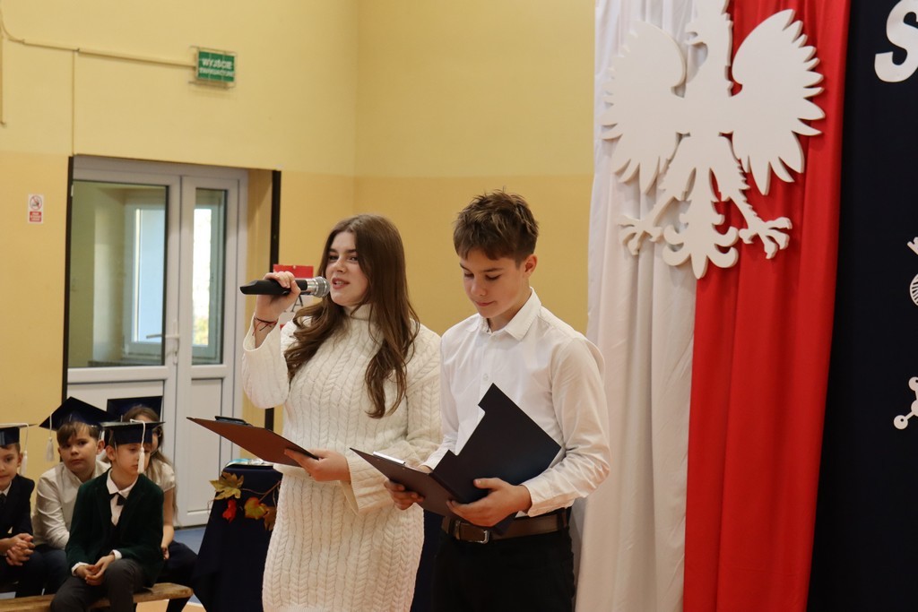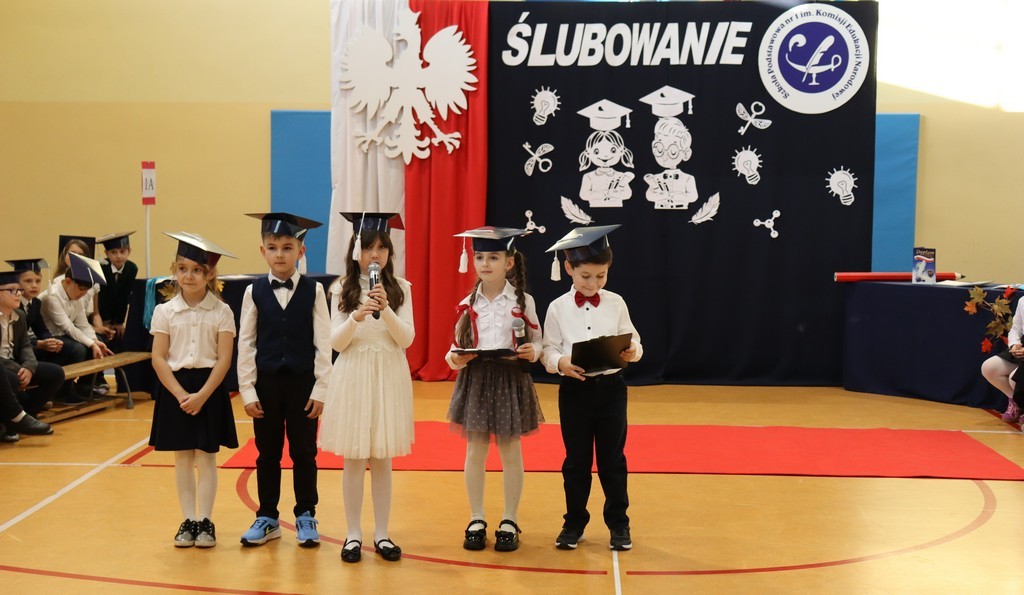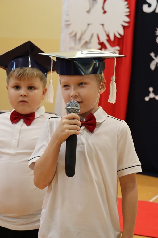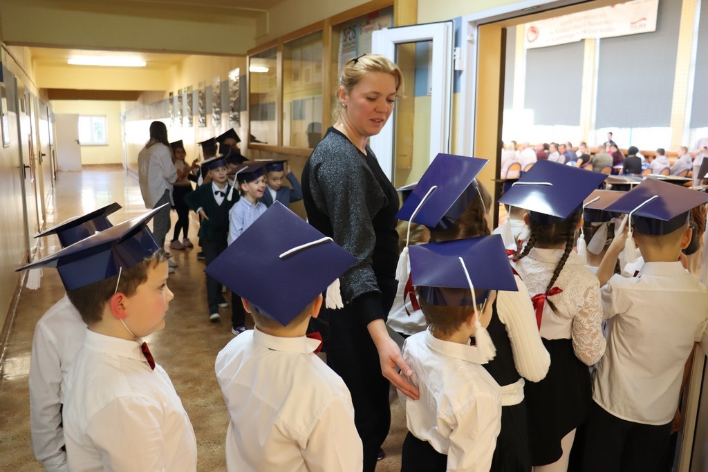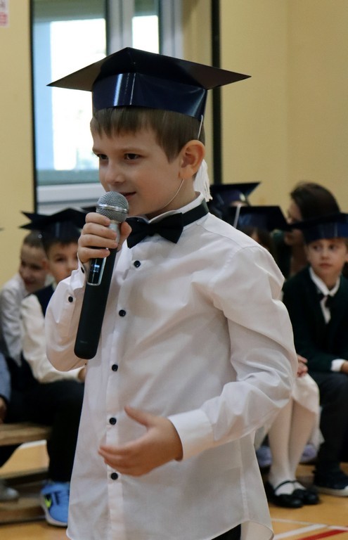 W czwartek, 23 października 2025 r. odbyła się w naszej szkole uroczystość pasowania na ucznia. Uroczyste ślubowanie złożyli uczniowie klas I a i I b pod opieką wychowawców pani Pauliny Hardej i pani Edyty Zabłockiej. Pasowanie, to jedno z najważniejszych wydarzeń w szkolnym życiu pierwszoklasisty. Podczas uroczystości obecni byli: Pani Dyrektor Magdalena Olszewska – Silna, Pani Wicedyrektor Weronika Paczuska, Przewodnicząca Rady Rodziców Pani Ewa Glapa- Chromińska, rodzice uczniów oraz nauczyciele . Od tego dnia, każde dziecko czuje się już prawdziwym uczniem, czyli pełnoprawnym członkiem szkolnej rodziny. Był to szczególny dzień, który na długo pozostanie w pamięci. W tym dniu dzieci oficjalnie przyjęte zostały do grona uczniów Szkoły Podstawowej nr 1 im. Komisji Edukacji Narodowej w Siedlcach. Podczas uroczystości pierwszoklasiści pokazali, że potrafią pięknie śpiewać i recytować wiersze. Najważniejszą jej częścią, na którą wszyscy czekali było ślubowanie oraz pasowanie. Uczniowie klas pierwszych ślubowali być godnymi Polakami i wzorowymi uczniami. Największym przeżyciem dla dzieci był moment pasowania. Pani Dyrektor Magdalena Olszewska- Silna, poprzez dotknięcie czerwonym ołówkiem ramienia każdego dziecka, zamieniała go w prawdziwego ucznia. Na koniec pierwszoklasiści otrzymali pamiątkowe dyplomy. Po uroczystości uczniowie klas I wraz z wychowawcami i rodzicami udali się do klas na poczęstunek. To był wyjątkowy dzień dla najmłodszych wychowanków, którym życzymy sukcesów i przyjemnego pobytu w murach naszej szkoły.