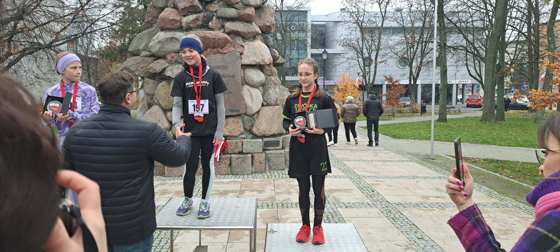 Biegacze rywalizowali na trasie w centrum miasta, ze startem ul. Pułaskiego i metą ul. Skwer Niepodległości 2 przy Urzędzie Miasta Siedlce. Dziewczęta i chłopcy klas I-II mieli do pokonania dystans 300m, klas III-VI dystans 500m oraz klasy VII-VIII dystans 700 metrów. Każdy uczestnik otrzymał pamiątkowy medal. Indywidualnie I miejsce zajęła Marcjanna Biały z kl. 4b, III miejsce zajęła Aleksandra Mateusiak z kl. 3a, III miejsce zajął Ignacy Wyszomierski z kl. 1a, którzy otrzymali pamiątkowe statuetki.