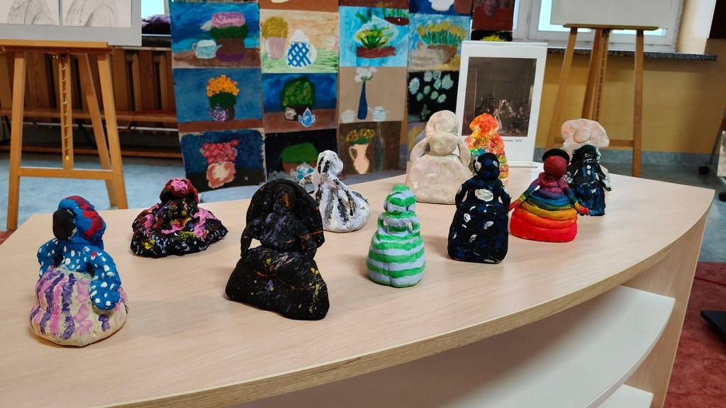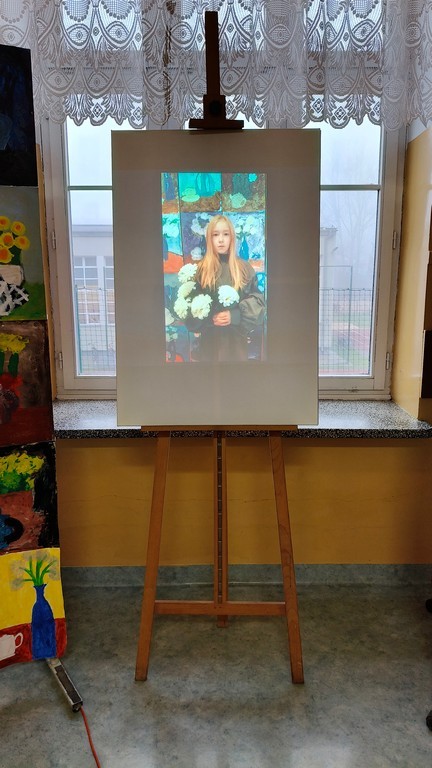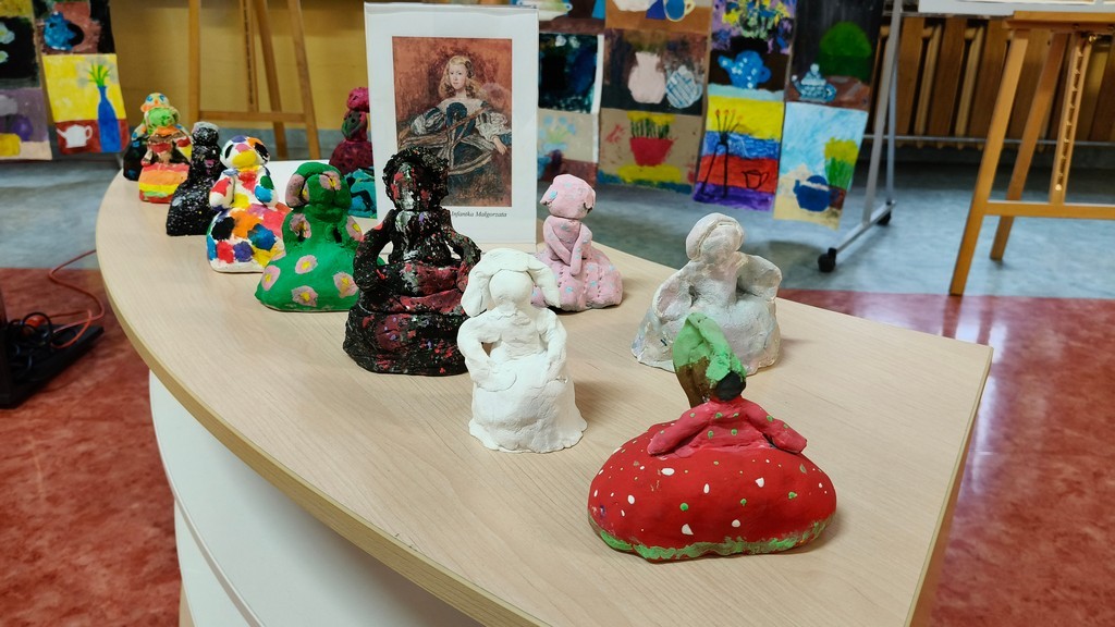 Podczas wernisażu Pani Katarzyna Buzuk, nauczyciel plastyki, twórca ekspozycji opowiedziała zgromadzonej społeczności szkolnej o wystawie i procesie powstawania prac. Prezentowana fotorelacja dokumentująca proces twórczy, pokazała z jakim zaangażowaniem Młodzi Twórcy weszli, na lekcjach plastyki i warsztatach, w twórczy dialog z wielką malarką. Jak podkreśliła dyrektor szkoły Pani Magdalena Olszewska- Silna, sprawczość i bliski kontakt ze sztuką odgrywa olbrzymią rolę w rozwoju młodych ludzi, pozwala na wyrażanie własnych emocji, inspiruje do działania, a dziękując za organizację wystawy podkreśliła wagę relacji uczeń- nauczyciel w procesie twórczym.