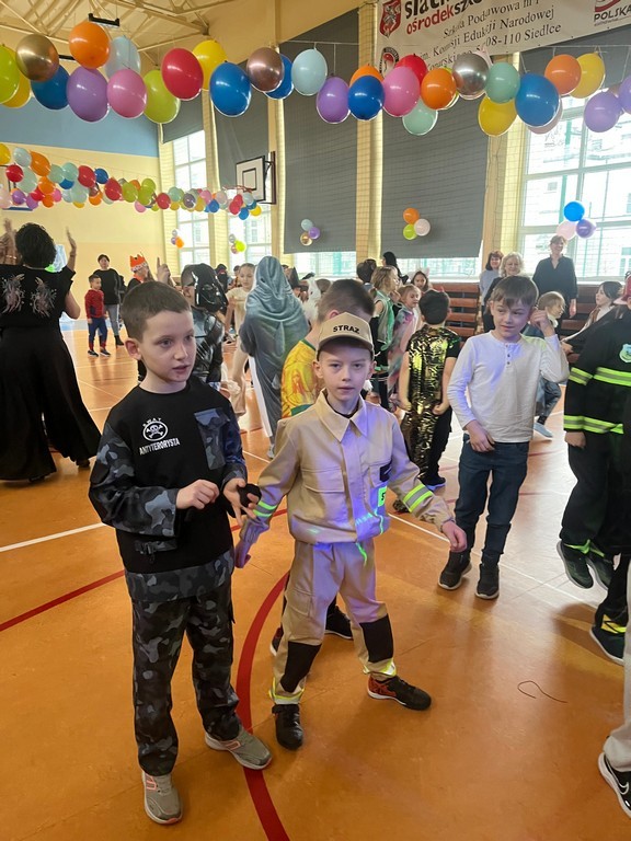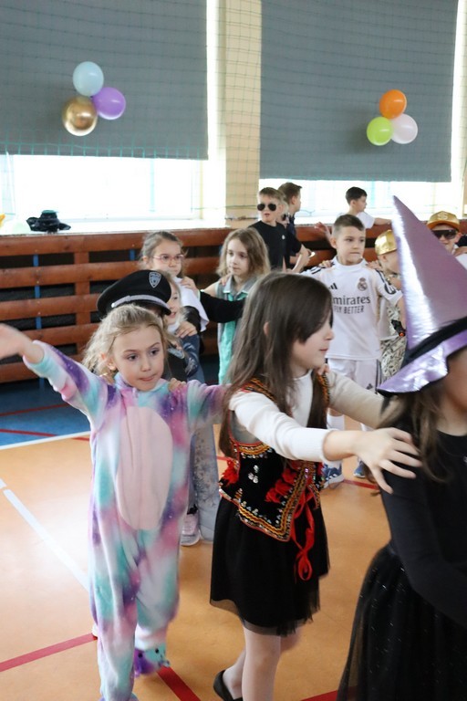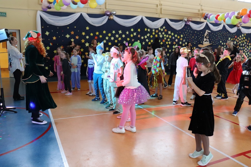 Dnia 13 lutego 2026 r. w naszej szkole odbył się bal karnawałowy. Dzieci bawiły się doskonale – było mnóstwo szczęścia, energii i zadowolenia. Na pięknie udekorowanej sali gimnastycznej pojawiły się znane i kolorowe postacie.